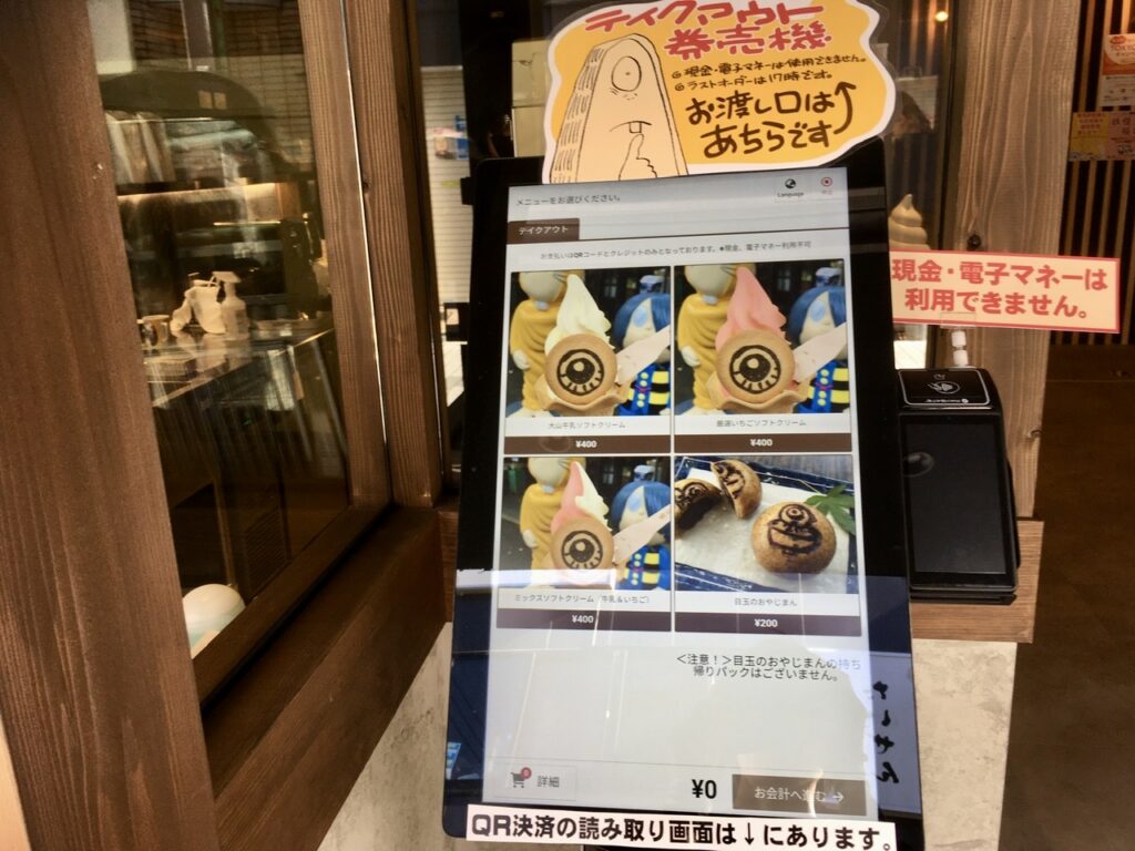 ソフトクリームには目玉のオヤジクッキー付き。ソフトクリームはミルクの風味が豊かで最高に美味しい!!!クッキーとの相性も抜群です。鬼太郎茶屋さんへお越しの際にはぜひ召し上がっていただきたい。