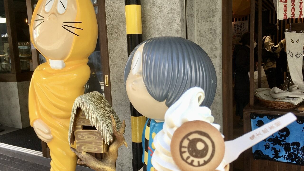 ゲゲゲの鬼太郎グッズやお菓子を販売している鬼太郎茶屋さん。2024年に深大寺から調布駅前の天神通り商店街に移転。駅近になってアクセスが便利になった今の鬼太郎茶屋さんへ行ってみました。ソフトクリームはマストです!