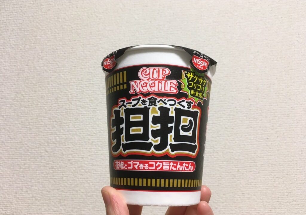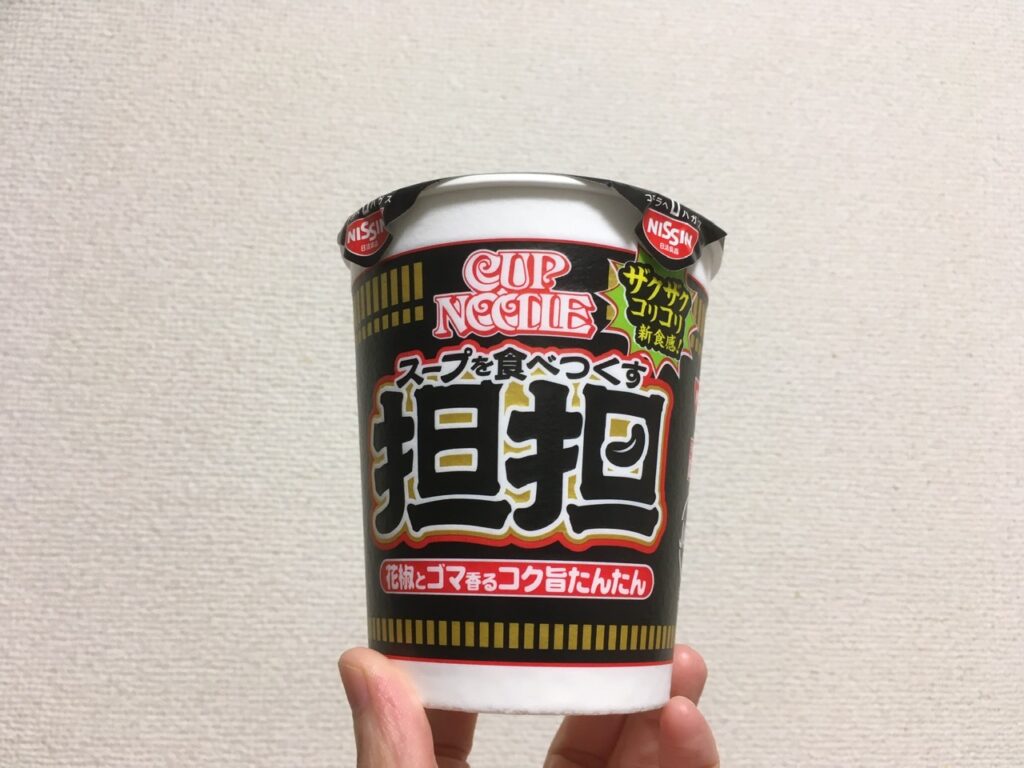 「スープを食べつくす担担」なのか「花椒とゴマ香るコク旨たんたん」なのか。副題がたくさんあるものの、とりあえずカップヌードルです。